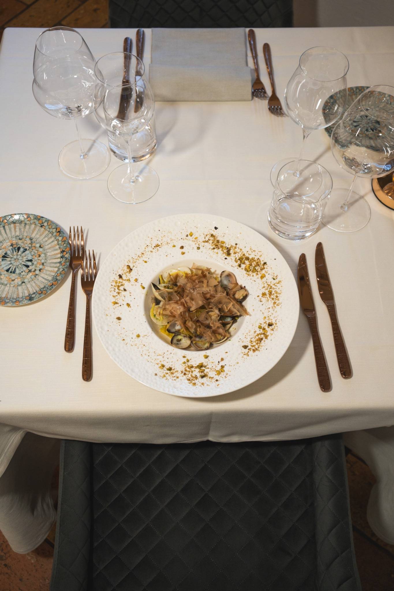 La cucina di Rossetti si muove tra il ricordo e la sorpresa: profumi familiari che si intrecciano a gesti contemporanei, materie prime del territorio elevate a forme nuove, piatti che profumano di casa ma portano nel palato un viaggio gastronomico.